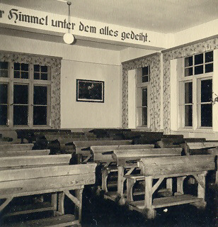 In dem Gebäude befanden sich ein Unterrichtsraum, eine Lehrerwohnung und die