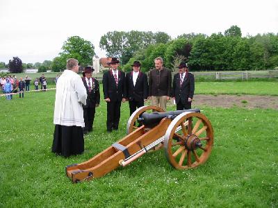 Pfarrer Franz Ferstl bei der Segnung der Kanoniere und der Kanone
